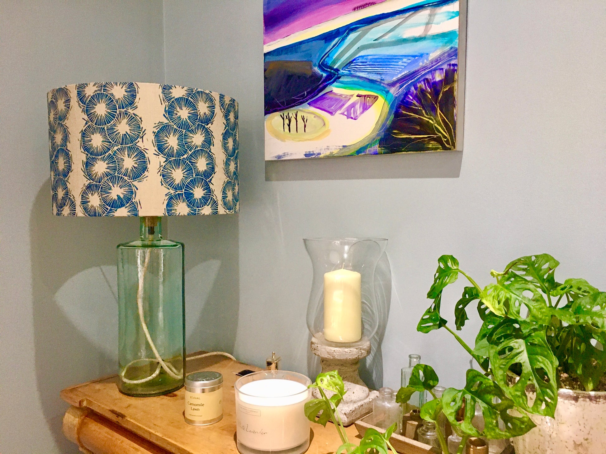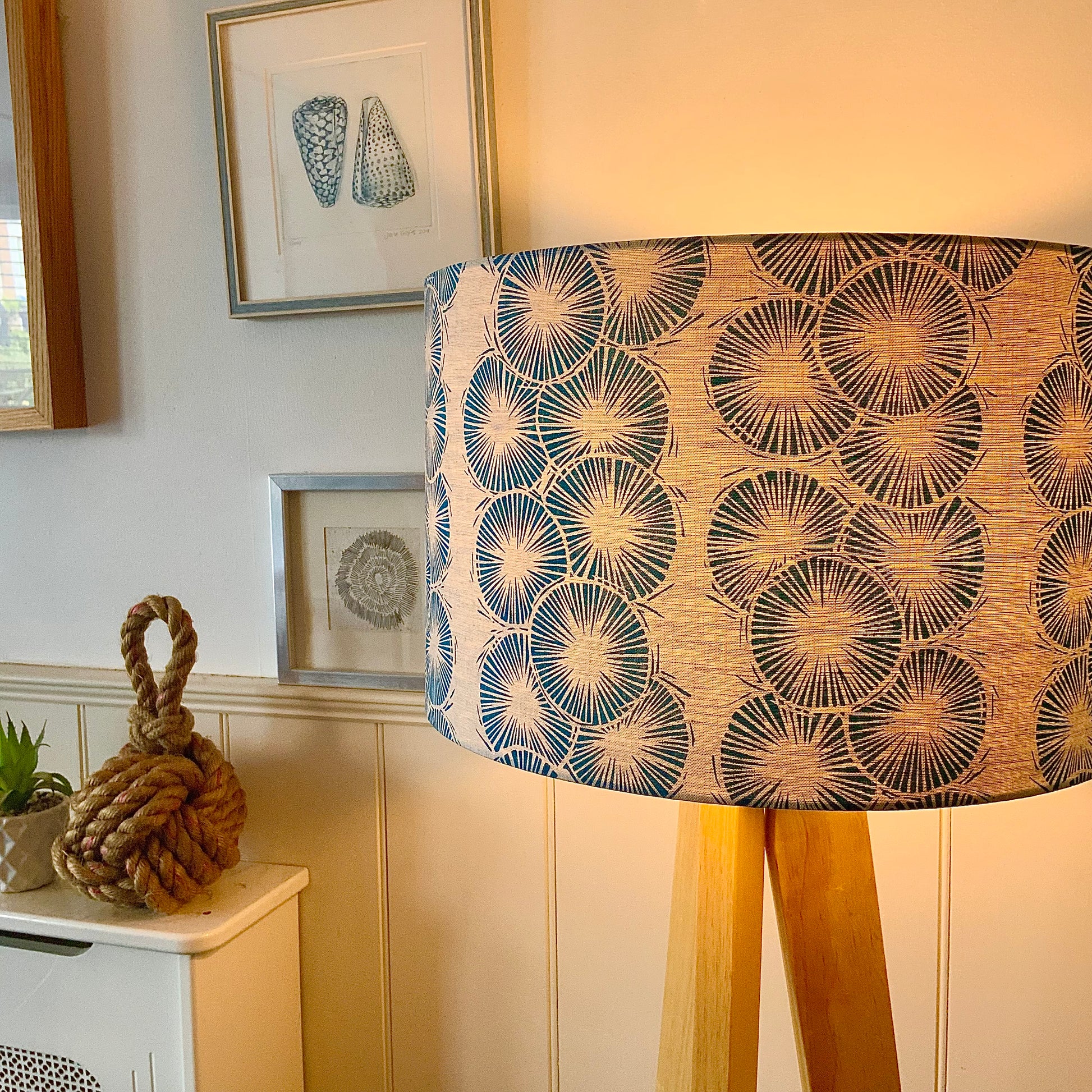 Handprinted using waterbased Eco inks onto Oatmeal linen.