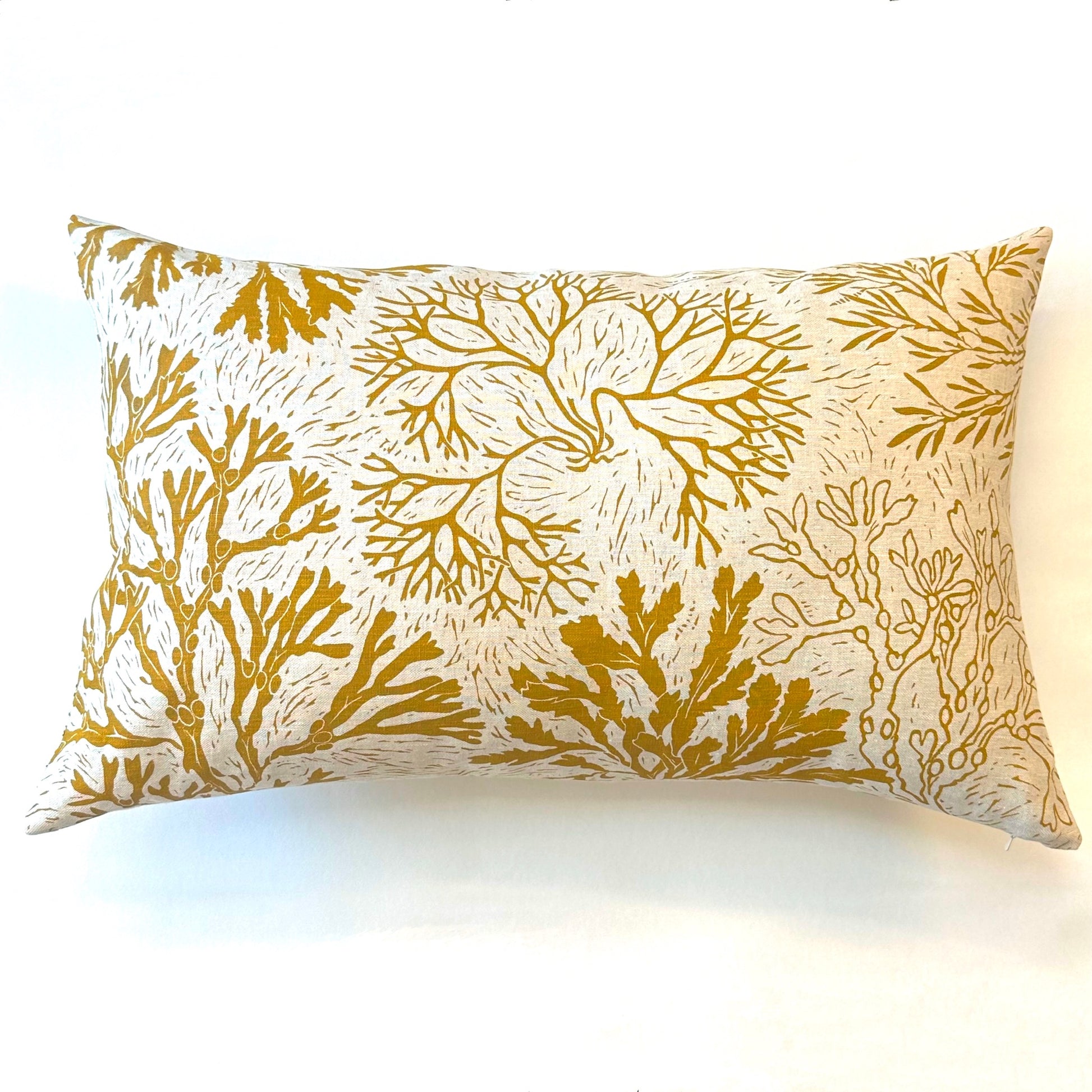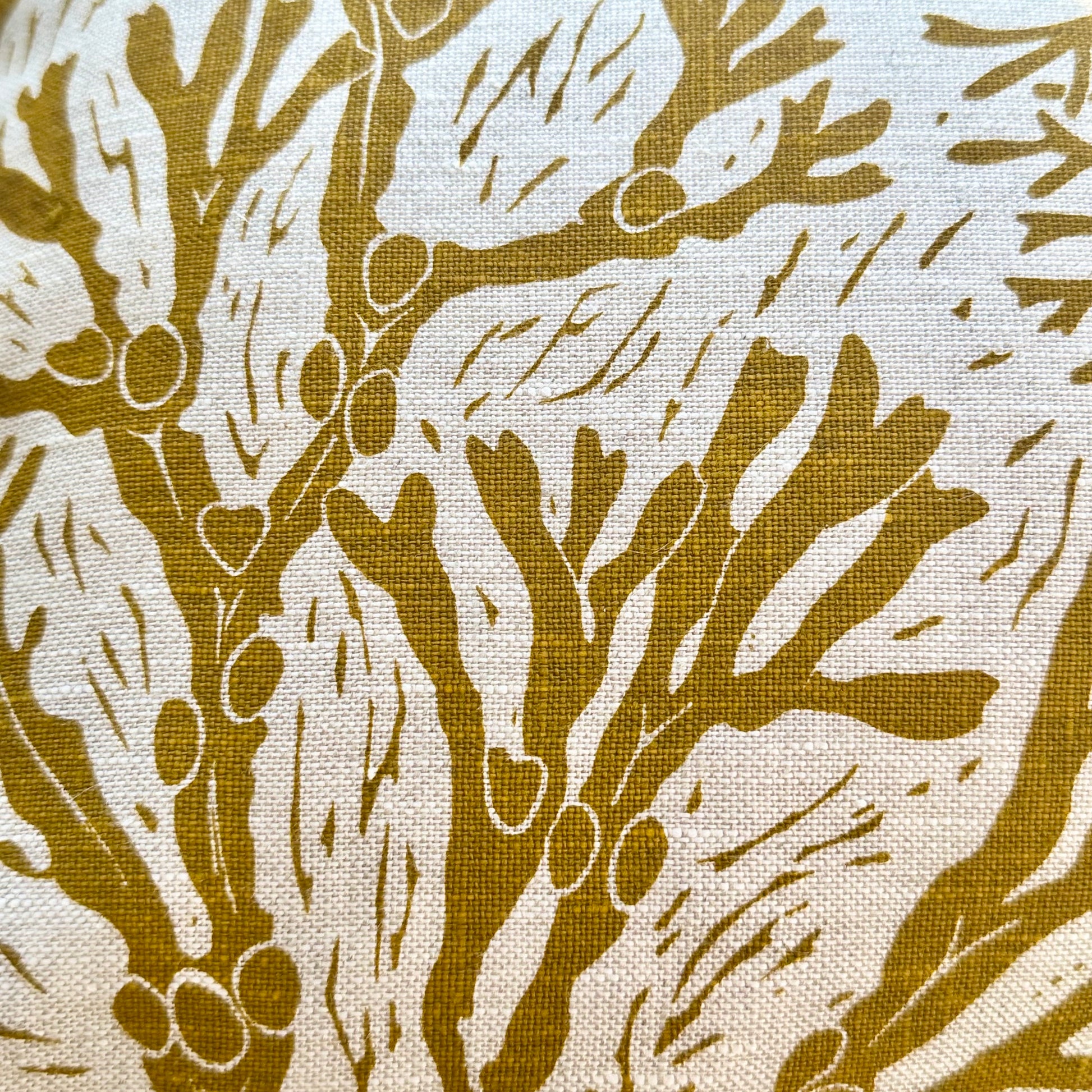 This design is based on my Seashore lampshade and is inspired by different seaweeds I collected on Bembridge beach, such as Bladderwrack, Serrated Wrack and Carragheen. Originally created as a Lino print, this design is now screenprinted onto beautiful Irish linen using waterbased inks.