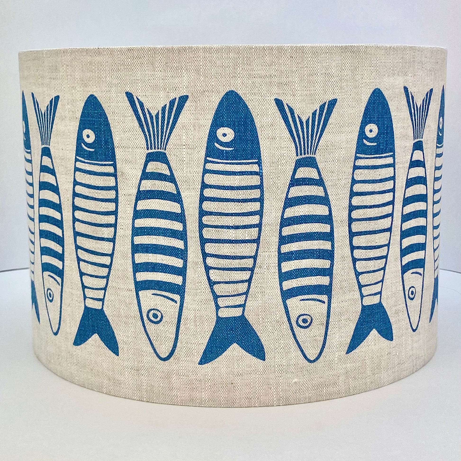 I love stripes, so it was inevitable that they would feature on one of my designs. There’s lots of stripey fishies handprinted onto this lampshade. A cheerful design that will look fab in your coastal home.